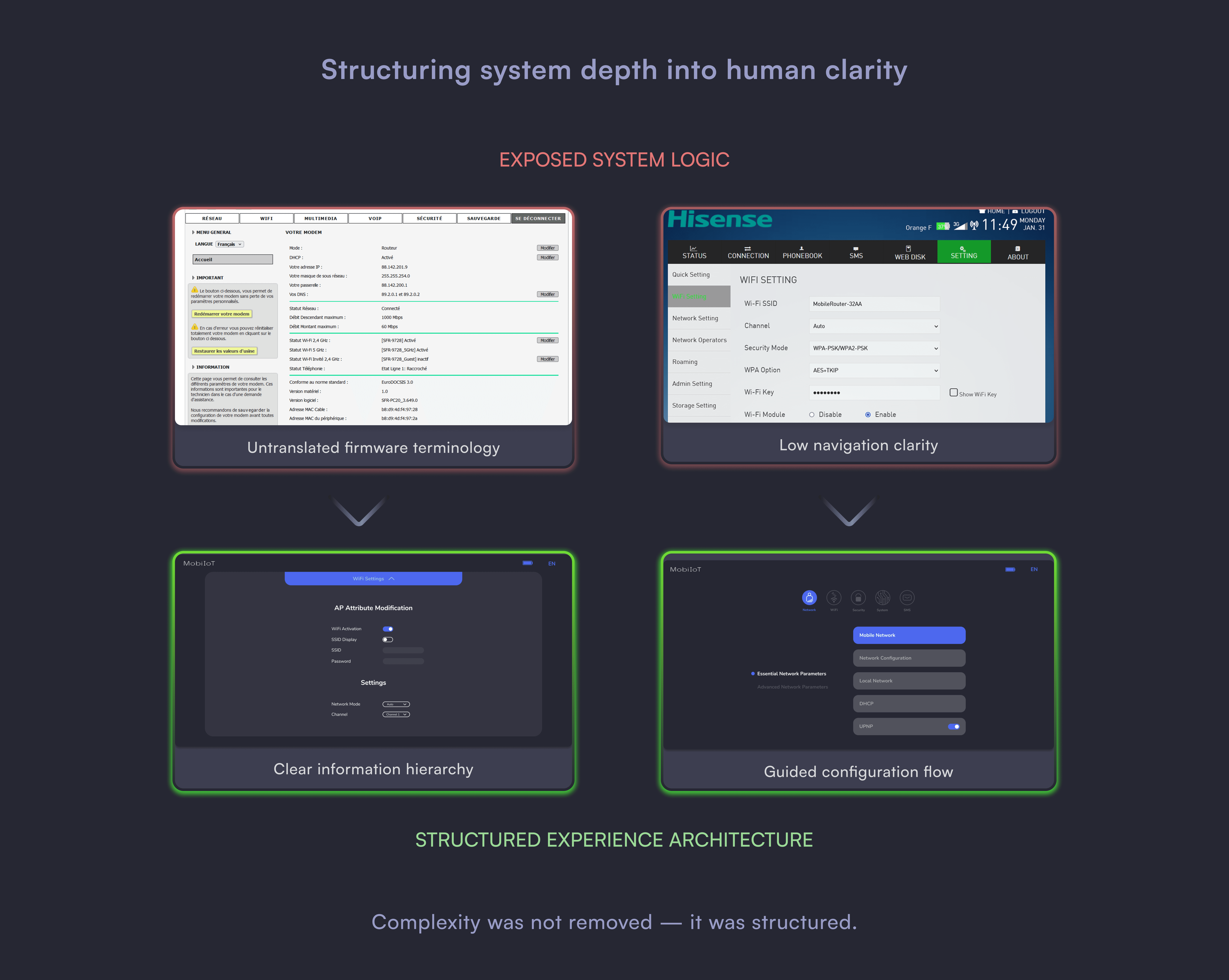 The challenge was to translate telecom infrastructure and hardware constraints into a clear, intuitive, and reassuring experience — from first unboxing to everyday use.